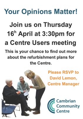 Telephone: 020 8948 3351 email: manager@cambriancentre.org ©Cambrian Community Centre.